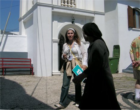 ガイドが教会を管理している老婦人に掛け合いに行っている間、日陰で休息していると突然鐘が鳴り出したので驚いた。