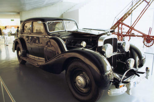 マイバッハ・ツェッペリンの横に木製の古い梯子車があった。